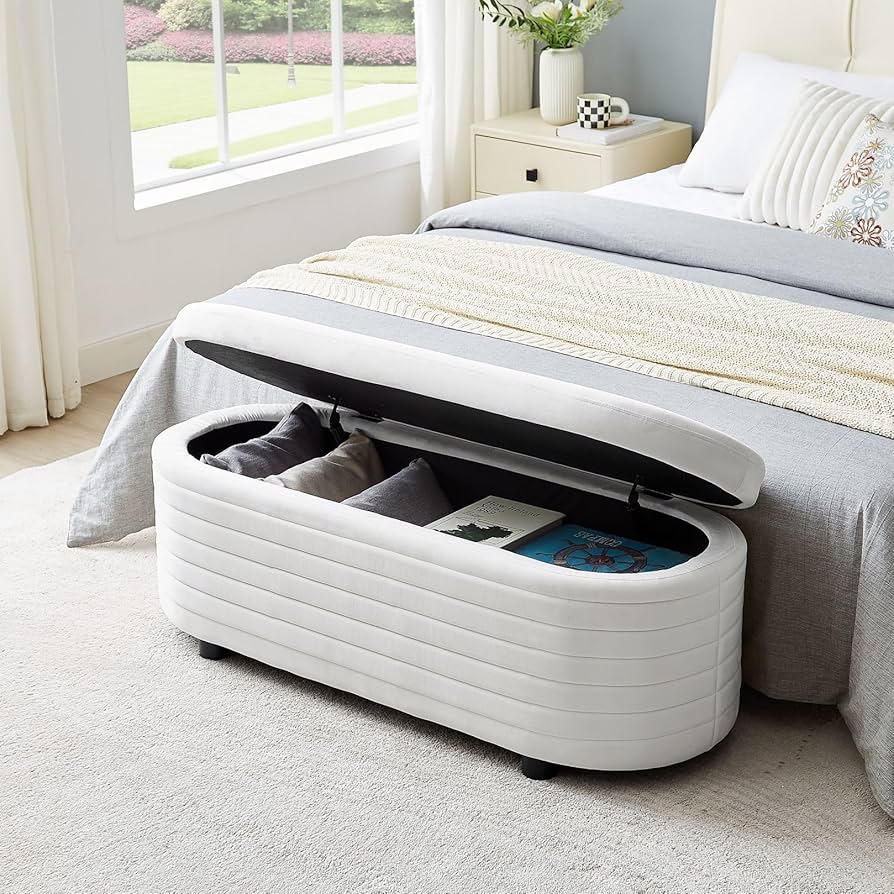 Modern round tufted storage bench to complete the beauty of your bedroom